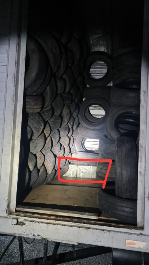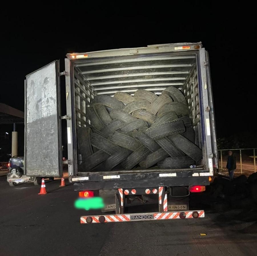 O condutor de 58 anos, morador de Marialva, ao ser questionado sobre a carga transportada, informou que estava carregando pneus usados. Entretanto, quando os policiais verificaram a carga, por meio de lanterna, puderam verificar caixas ocultas sob pneus.