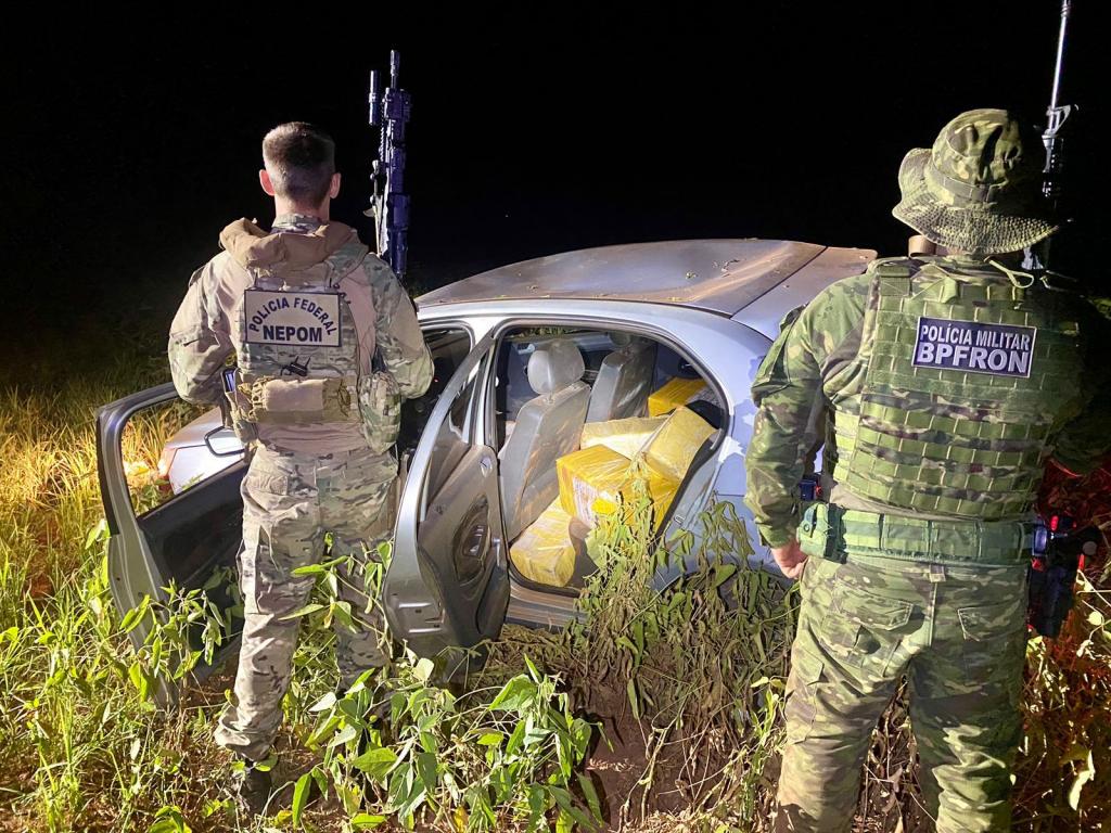 Em determinado momento, o condutor abandonou o veículo em movimento, fugiu a pé por meio de uma plantação de soja. Após intensas buscas, o homem foi localizado e detido. No veículo foram encontrados vários fardos que, ao serem posteriormente pesados, totalizaram aproximadamente 215,5 kg de substância análoga a crack e 111,5 kg de substância análoga a cocaína.