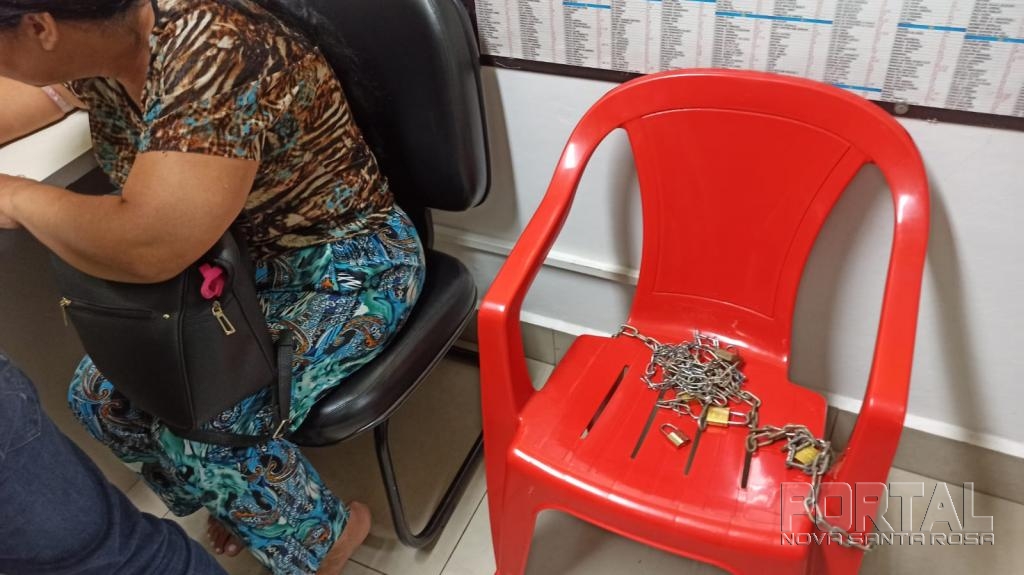 A Polícia Militar foi acionada e ao chegar no local viu uma mulher acorrentada em uma cadeira, em via pública, em estado de choque e sem ferimentos.