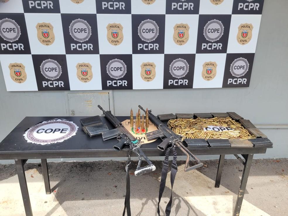 De acordo com o delegado Rodrigo Brown, entre as armas encontradas estão fuzis 7.62, armas com calibre de uso militar, conhecidas no meio policial como armas de guerra.