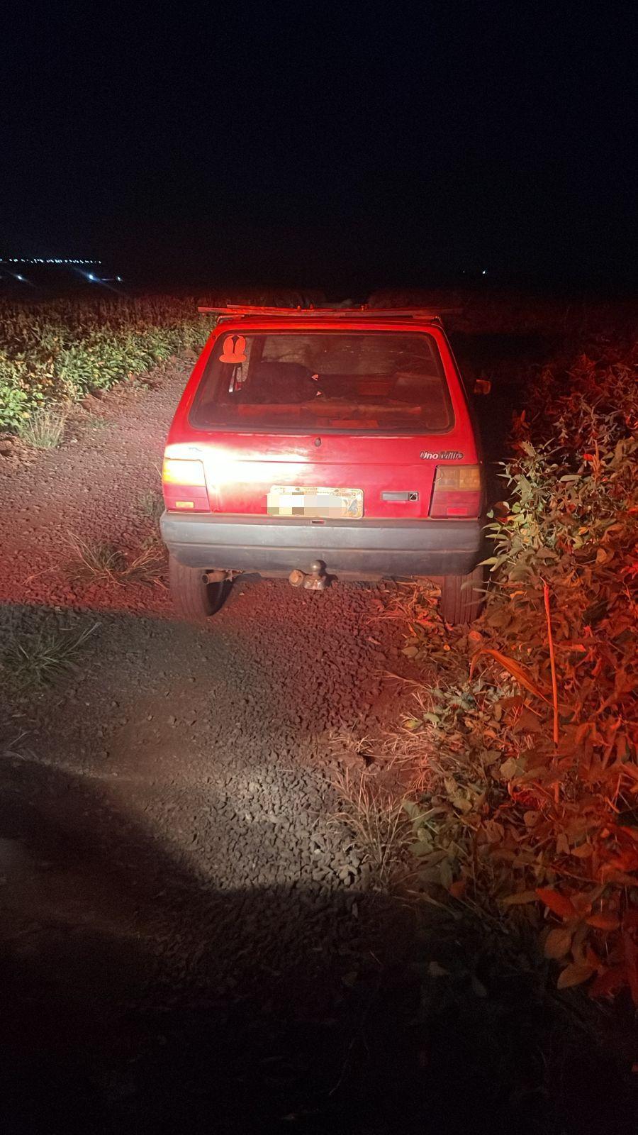 Na noite desta segunda-feira (13), por volta das 20h30, a Polícia Militar estava realizando patrulhamento pela PR-239, próximo a Jesuítas, quando um Fiat Uno chamou atenção. Assim que o motorista viu a viatura, ele entrou em um carreador (uma estrada rural), seguido por outros dois carros, o que levantou suspeita na equipe.