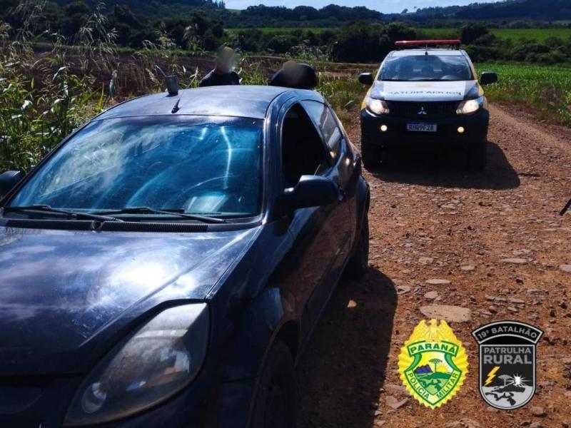Na manhã desta segunda-feira (11), por volta das 10h30min, uma equipe da Patrulha Rural da Polícia Militar realizava patrulhamento pela linha Sanga Forquilha, no interior de Mercedes, quando avistou um veículo Ford Ka preto com dois homens em seu interior.