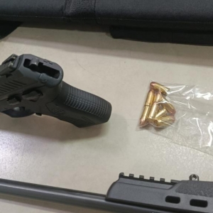Minutos depois, a PM recebeu nova informação de que o suspeito havia retornado à residência. A equipe deslocou-se novamente e localizou o homem, que recebeu voz de prisão. Questionado sobre outras armas, ele indicou a existência de uma espingarda calibre .22, encontrada no interior do imóvel com nove munições intactas no carregador.