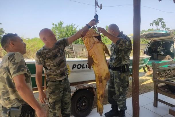 Durante a abordagem, a equipe viu dois peixes da espécie jaú dentro do barco. Ao serem pesados, os exemplares totalizaram 130 quilos. Segundo a polícia ambiental, a pesca desta espécie é proibida para fins de posse e abate no Rio Ivaí, entre o Salto Bananeira até a foz no Rio Paraná, por interesses turísticos e ambientais.
