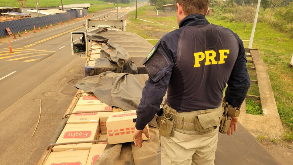 Diante do nervosismo apresentado pelo motorista, a equipe solicitou que fosse retirada a lona para averiguação da carga e os policiais observaram que, ao invés da carga citada, na realidade existia grande quantidade de caixas de cigarros de origem paraguaia, que restaram estimados em cerca de 600.000 (seiscentos mil maços), sendo de imediato dado voz de prisão ao motorista pelo crime de contrabando.