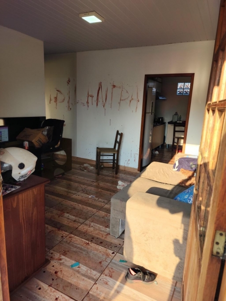 O agressor foi algemado, já a vítima conseguiu sair por outra porta lateral, e estava toda machucada, coberta por sangue e com hematomas pelo corpo, um cenário de "filmes de terror" foi encontrado na casa, o imóvel estava completamente tomado por sangue no chão e paredes, inclusive o autor, escrever a palavra "pilantra" na parede com o sangue da vítima.