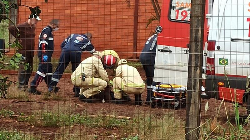 Os socorristas só conseguiram entrar no pátio após a chegada do tutor dos animais, que precisou retirar os cães, que estavam bastante agressivos, e prendê-los no interior do barracão.