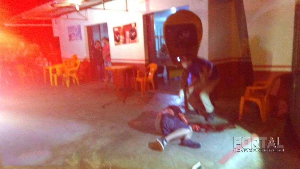 No bar havia cerca de 20 pessoas no momento dos fatos. Ao ser alvejado, arma do autor dos fatos caiu ao lado de seu corpo. Em ato continuo, foi acionado a equipe do Corpo de Bombeiros para prestar atendimento ao indivíduo, que foi identificado e encaminhado para o Hospital Bom Jesus para atendimento médico hospitalar.