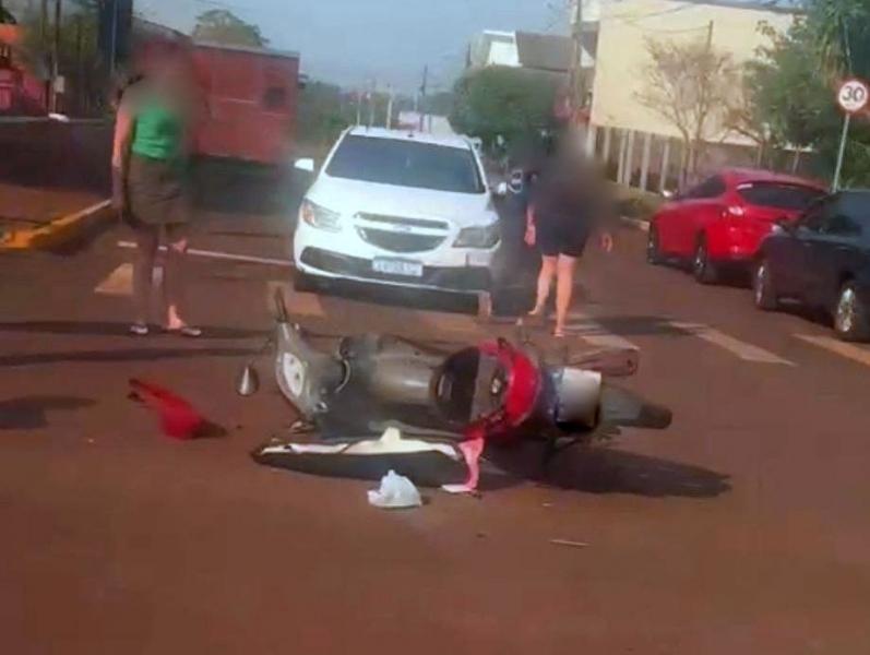 Com a batida, o homem que conduzia a moto sofreu queda e ficou ferido. Ele foi socorrido e encaminhado para atendimento médico no Centro de Saúde.