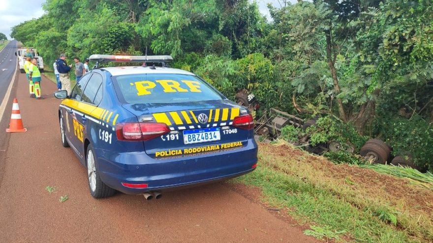 Na manhã desta quarta-feira (5), um grave acidente foi registrado na BR-277, no quilômetro 678, no município de Medianeira, Paraná. Segundo informações da Polícia Rodoviária Federal (PRF), um caminhão, com placas de Cascavel, saiu da pista e tombou às margens da rodovia.