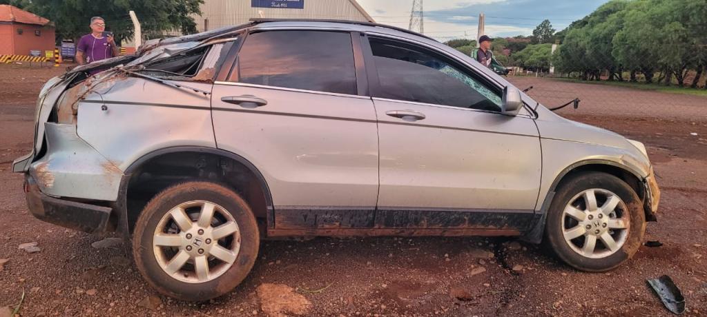 O veículo envolvido, o automóvel I/Honda CR-V LX. Com base na análise dos vestígios materiais identificados, constatou-se que Honda trafegava na faixa de trânsito do sentido Céu Azul a Cascavel, quando, saiu da pista e capotou.