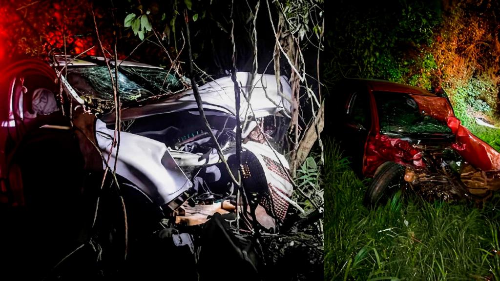 Segundo a Polícia Rodoviária Federal (PRF), o sinistro aconteceu por volta das 21h40, no km 527,4, e foi do tipo saída de pista seguida de colisão frontal.