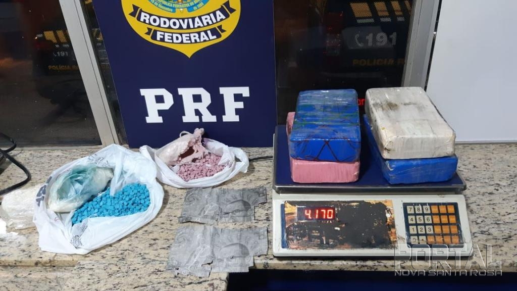 Com o comportamento suspeito do condutor, a equipe decidiu realizar busca minuciosa no interior do veículo, encontrando, oculto no estepe do veículo, aproximadamente 4,165Kg de substância análoga a cocaína, dois envelopes de substância análoga ao LSD e 1.213 comprimidos de substância análoga ao Ecstasy.