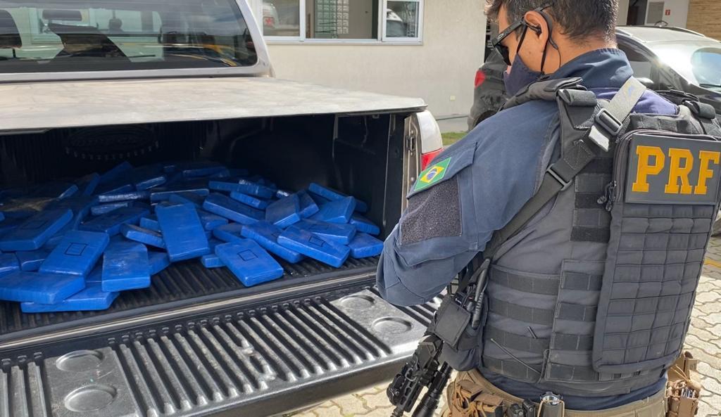 A Polícia Rodoviária Federal (PRF) apreendeu mais de 100 quilos de cloridrato de cocaína, que eram transportados escondidos em fundos falsos de uma Amarok, na tarde desta quinta (22) em Balsa Nova.