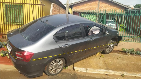 No local foi visualizado uma grande aglomeração de pessoas e foi visualizado um veículo Honda City de cor cinza, colidido contra a grade de uma residência, ao averiguar o ocorrido foi constatado que o veículo possui-a várias perfurações de arma de fogo e marcas de sangue em seu interior, em contato com populares que se encontravam próximos, foi relatado que um homem havia sido vítima de disparos de arma de fogo e teria sido levado pelo seu irmão até a unidade de pronto (UPA), também foi relatado por populares que o autor dos disparos teria efetuado os disparos de frente a sua residência quando a vítima transitava pelo local e que na sequencia teria se evadido com o apoio de sua irmã em uma motocicleta, modelo Titan de cor preta.