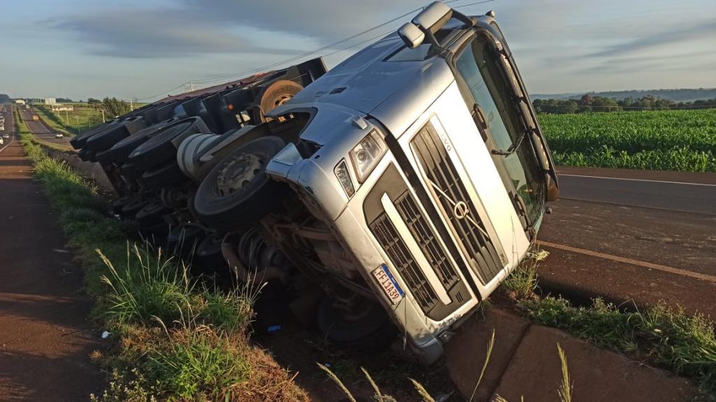 De acordo com informações da Polícia Rodoviária Federal (PRF), o caminhão Volvo com placa Mercosul, carregado com areia, trafegava no sentido Toledo, quando o Joel perdeu o controle da direção e o veículo tombou no canteiro central da rodovia.