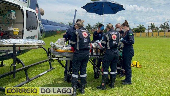Diante da necessidade de cuidados especializados, a vítima foi transferida de helicóptero para um hospital de referência em Cascavel. A remoção contou com o apoio da equipe aeromédica do Consórcio Intermunicipal Samu Oeste (CONSAMU), garantindo a continuidade do atendimento avançado.