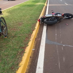 Um acidente entre uma moto e uma bicicleta foi registrado na tarde desta quarta-feira (20) na avenida Senador Atílio Fontana, jardim Panorama, em Toledo.