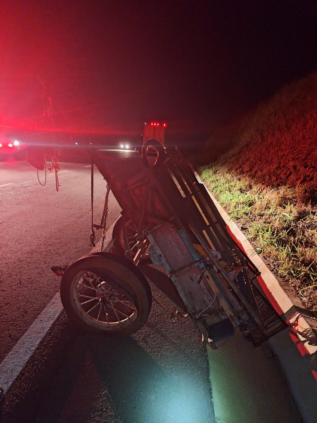 Conforme informações da Polícia Rodoviária Federal, o cavalo que puxava a charrete sobreviveu.