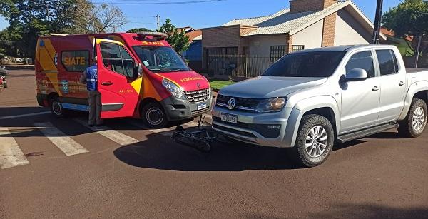 O ciclista trafegava pela rua Cerro Largo e a caminhonete seguia pela São Francisco, quando o condutor da caminhonete avançou a preferencial, atingiu o idoso.