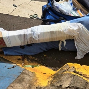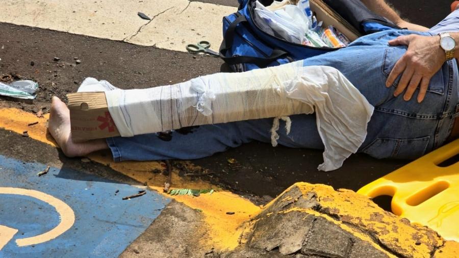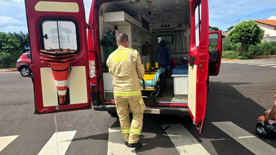 O condutor da YBR sofreu uma fratura exposta na perna e recebeu os primeiros socorros de uma equipe do Corpo de Bombeiros, sendo encaminhado imediatamente para atendimento médico. No veículo Strada, ninguém se feriu.