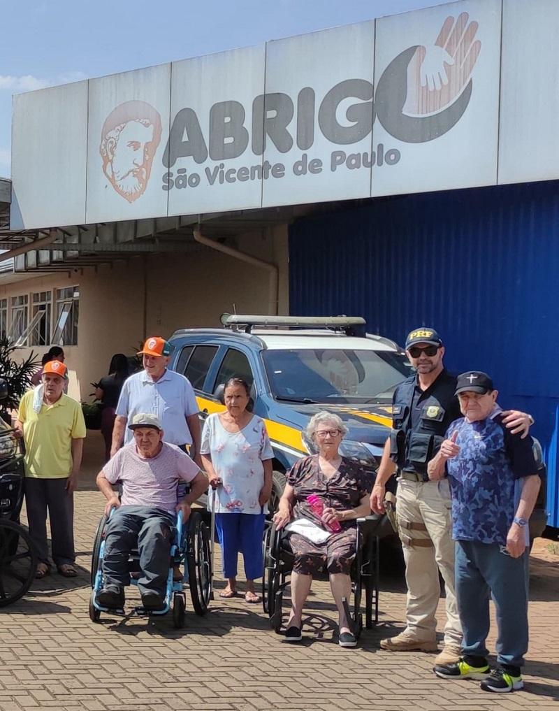 Nossos policiais estiveram no Abrigo São Vicente de Paula, em Cascavel, que atende idosos em situação vulnerabilidade, vários deles vítimas de violência, negligência e abandono familiar; e no intuito de proporcionar um dia diferente, realizaram a seguinte atividade, levar um grupo de 19 idosos para um passeio pela cidade de Cascavel, em nossas viaturas caracterizadas.
