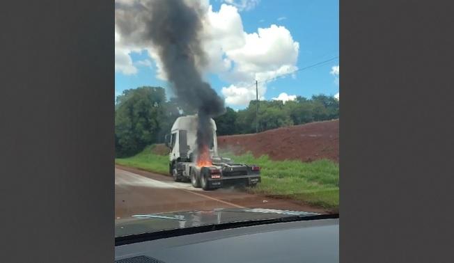 Informações chegam a redação do Portal Nova Santa Rosa de um caminhão pegando fogo nas proximidades do Posto da Polícia Rodoviária Estadual em Vila Paraíso, Palotina, na PR-182.