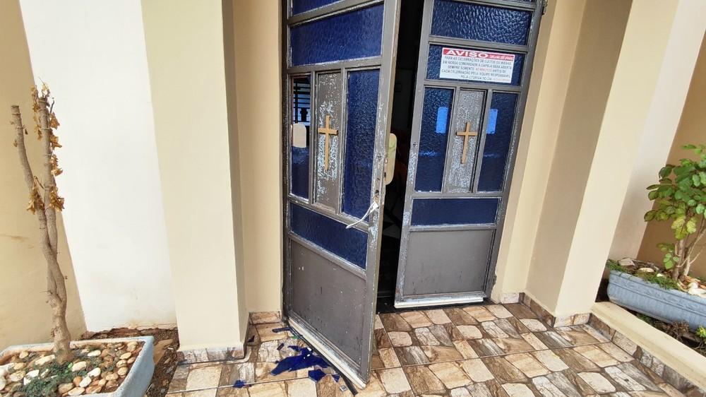 Durante a ação criminosa, parte do sacrário, itens religiosos e imagens de santos ainda foram vandalizados.