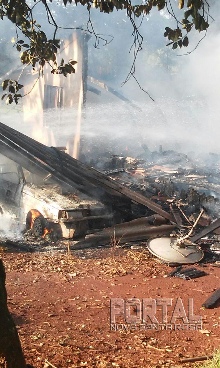 Um incêndio destruiu uma residência no interior de Maripá na tarde de hoje, por volta das 16h00, segundo informações apuradas pela equipe de reportagem do Portal Nova Santa Rosa, a residência de madeira que fica localizada na Linha Arapaçu, próximo à Vila Candeia foi destruída pelo fogo, não havia ninguém na casa no momento do incêndio o morador Adair Eggert estava em Toledo com a filha, a irmã dele que mora a uns 40 metros de distância percebeu a fumaça e quando notou a casa já estava em chamas. Foi acionado o caminhão pipa da prefeitura do município de Maripá que controlou as chamas, mas não restou nada, ainda conforme informações nada pode ser tirado, um veículo Fiat Uno que estava na garagem da casa também ficou destruído. As causas do incêndio devem ser apuradas.