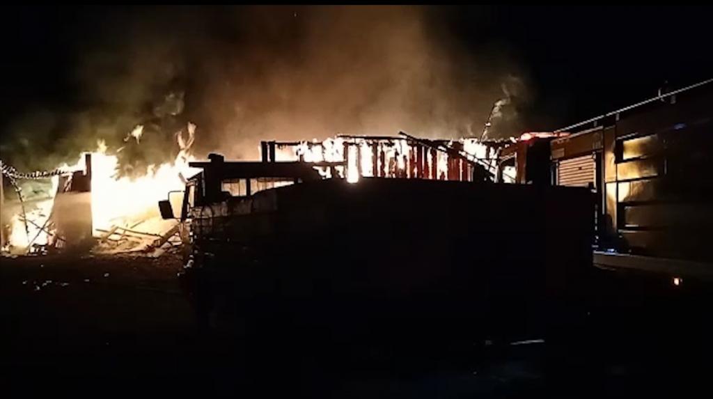 Segundo as primeiras informações, o fogo rapidamente teve inicio e as chamas logo tomou conta de um galpão de porte grande.