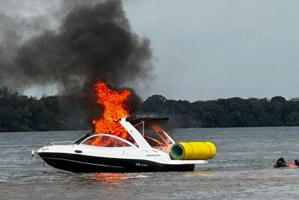 A lancha estava próximo à margem do Rio Paraná quando a fumaça começou. As pessoas que estavam nela precisaram pular na água para evitar o fogo e foram resgatadas por outras embarcações próximas. Pouco tempo depois, as chamas tomaram o veículo.