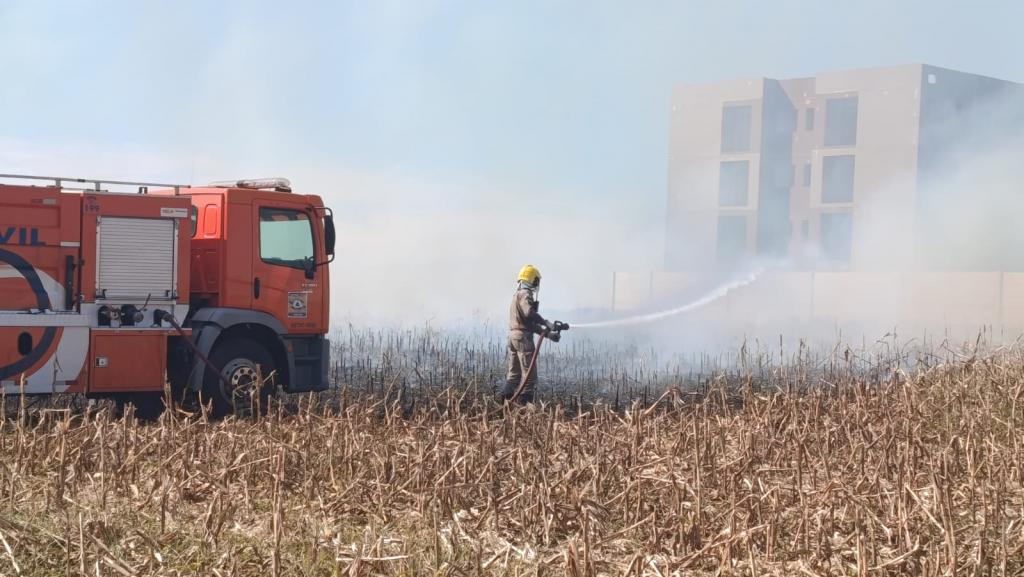 Um incêndio em uma lavoura de milho já colhida mobilizou o Corpo de Bombeiros na tarde desta segunda-feira (21), na Rua Ledi Fischer Maas, no bairro Santa Clara IV, próximo ao cemitério Jardim da Saudade, em Toledo. As chamas foram avistadas em uma propriedade, exigindo resposta imediata para evitar que o fogo se alastrasse ainda mais.