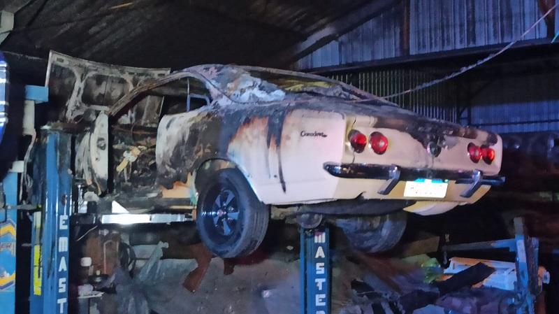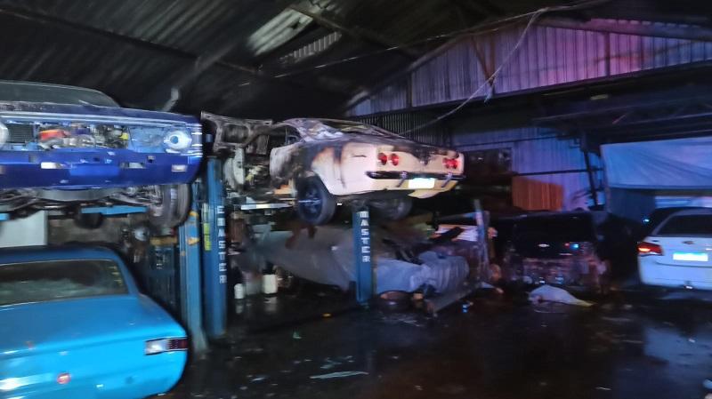 O espaço, utilizado para reparos automotivos com foco em carros antigos, foi tomado pelo fogo, que causou danos significativos em um Opala Comodoro, parcialmente queimado. Um Toyota Corolla também sofreu avarias, mas foi retirado a tempo antes que o incêndio se alastrasse. Outros veículos que estavam no interior da oficina não foram atingidos.