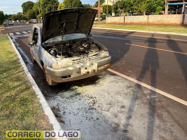 O condutor percebeu as chamas saindo do capô, parou o automóvel e constatou o incêndio na região do motor.