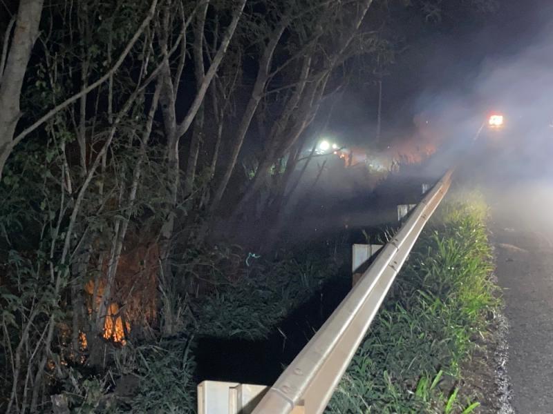 Um incêndio em área de vegetação às margens da BR-163 mobilizou equipes do Corpo de Bombeiros e da Polícia Rodoviária Federal (PRF) na noite desta segunda-feira (24), na região de São Luiz, próximo à divisa entre os municípios de Marechal Cândido Rondon e Mercedes.