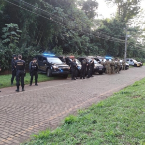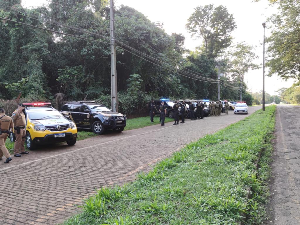 A Polícia Militar também está nesta ação junto a Polícia Federal.