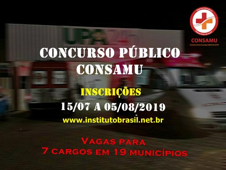 As inscrições para o Concurso Público do CONSAMU (Consórcio Intermunicipal SAMU Oeste) encerram na próxima semana.