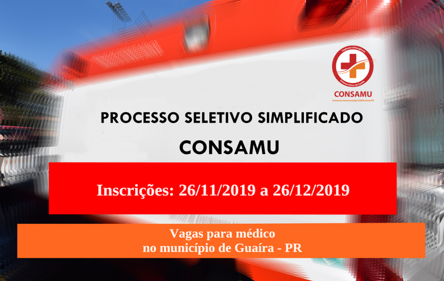 O prazo para inscrever-se no Processo Seletivo Simplificado (PSS) do CONSAMU (Consórcio Intermunicipal Samu Oeste) foi prorrogado.