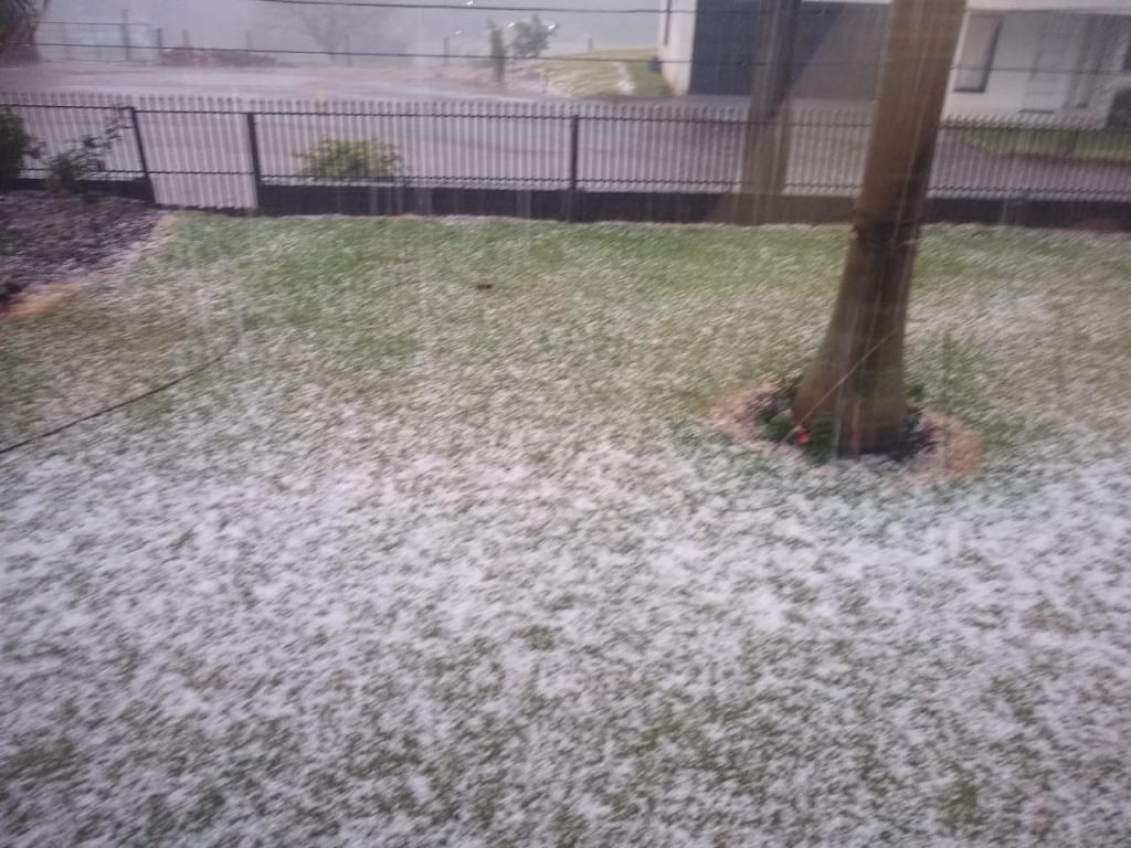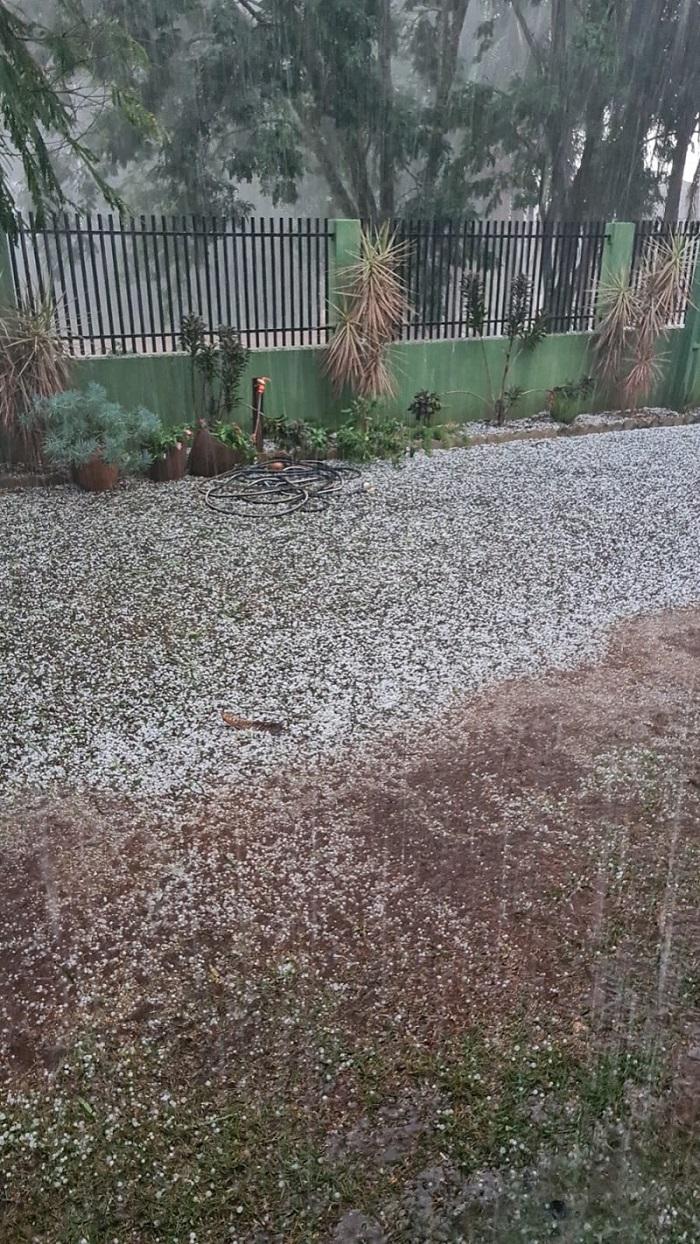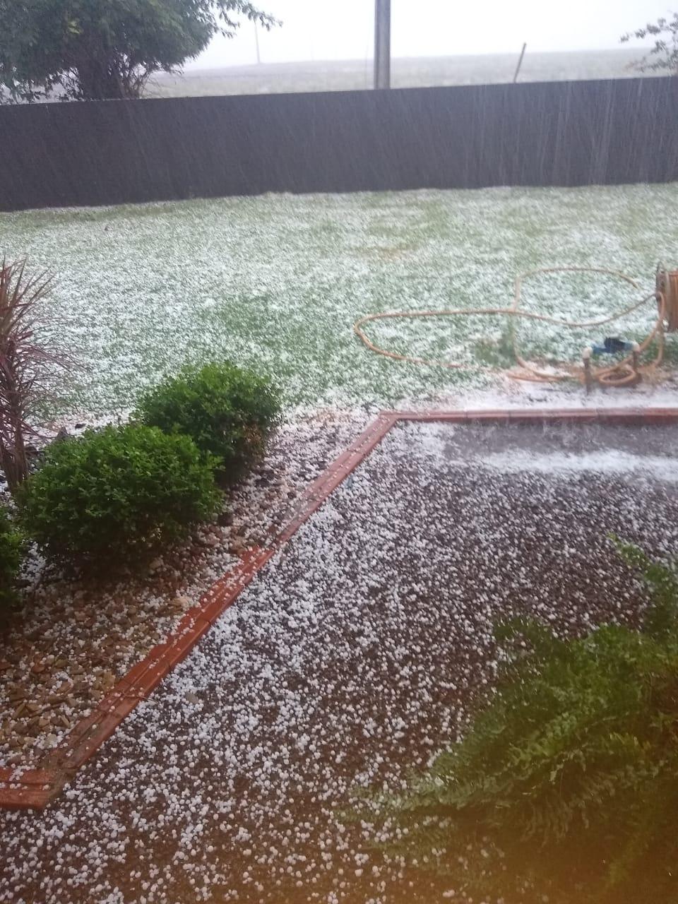 Em Novo Sarandi, também distrito de Toledo imagens foram feitas e granizo em maior quantidade, chuva calma sem ventos, disse a internauta.