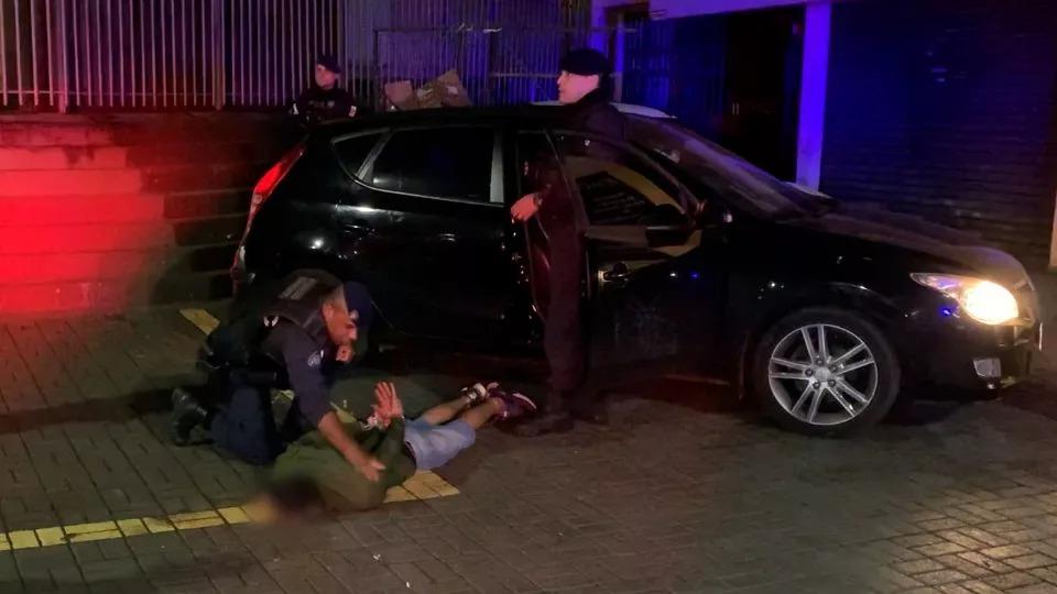 Um veículo tomado em assalto na noite de segunda-feira (23), em Cascavel, foi recuperado pela Guarda Municipal após perseguição na madrugada de hoje quarta-feira (25). Dois suspeitos, de 18 e 22 anos, foram presos. Um deles é irmão da vítima do roubo e, segundo a GM, participou do crime.