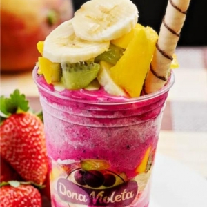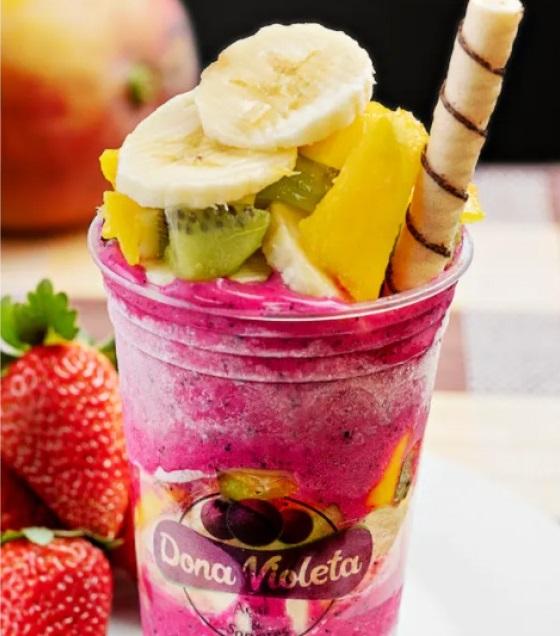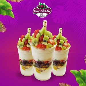 Na compra de um Combo do cardápio, você ganha um carimbo em seu Cartão. Ao completar 12 carimbos, você recebe um Combo de 500 ml de presente da Dona Violeta. É isso mesmo! Mas atenção, as compras devem ser efetuadas diretamente na loja, não sendo válido para compras por delivery.
