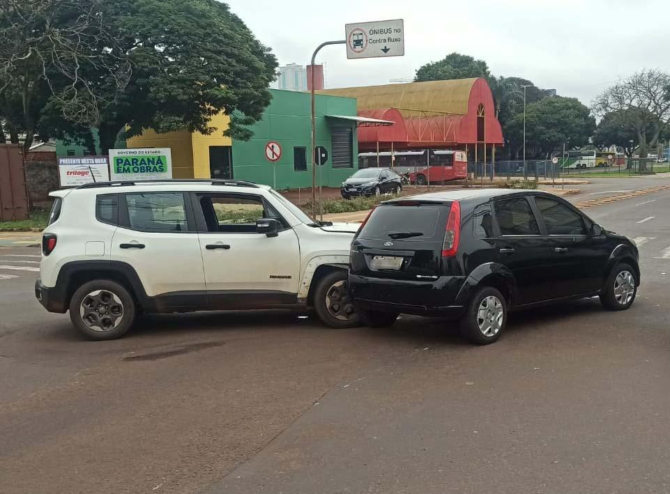 Um acidente de trânsito, entre um Jeep Renegade e um Ford Fiesta, ocorreu no final da manhã de hoje (15), na área central de Toledo, proximidades da rodoviária.