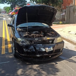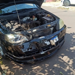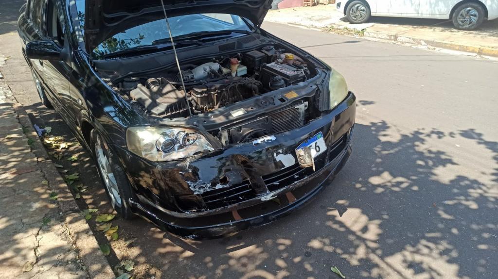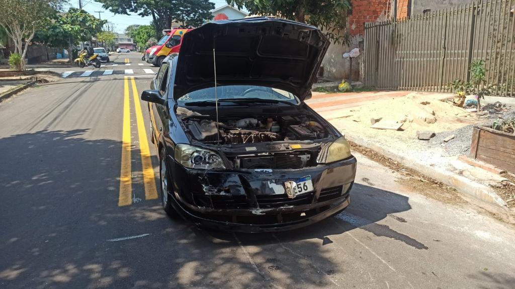 Uma moto Honda CB 300 e um Chevrolet Astra se envolveram em uma colisão, nesta tarde de terça-feira (03), na Vila Pioneira em Toledo.