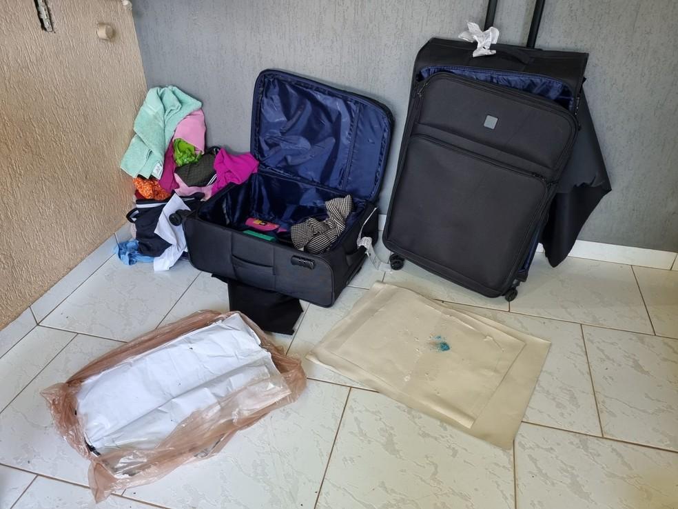 A passageira foi encontrada com 5 kg de cocaína em um fundo falso das bagagens. O destino final dela era Frankfurt, na Alemanha.