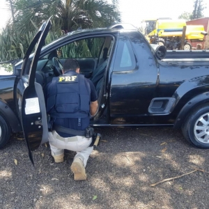 Durante ações de combate ao crime no Km 606 da BR 277, perímetro urbano de Santa Tereza do Oeste, os PRFs abordaram uma Camionete GM/Montana de placas de Curitiba.