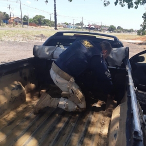 Na revista ao veículo foram localizados diversos tabletes de maconha, que estavam acondicionados de forma oculta atrás dos bancos, assoalho e laterais.
