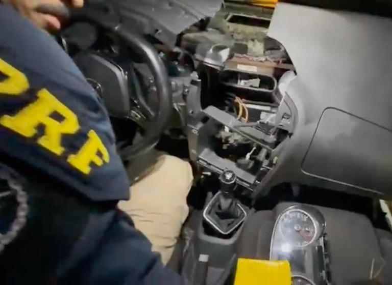 Durante a vistoria, os policiais perceberam sinais de adulteração no painel do veículo. Ao realizarem uma inspeção mais detalhada, encontraram um compartimento oculto de difícil acesso, onde estavam escondidos cerca de 17,4 quilos de cocaína, também conhecida como “ouro branco” devido ao seu alto valor no mercado ilícito.