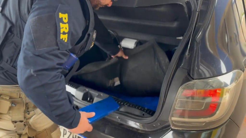 A Polícia Rodoviária Federal (PRF) apreendeu 104,2 quilos de maconha que estavam escondidos em um veículo Renault Sandero, com placas de Curitiba.