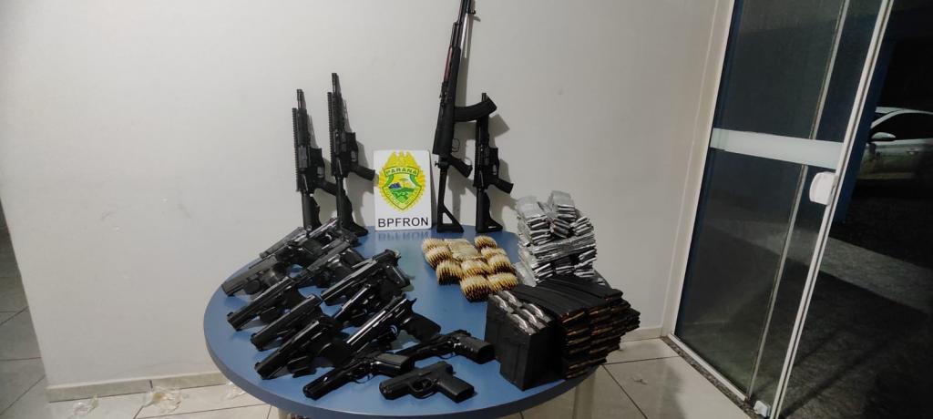 Após uma busca pessoal, nenhum item ilícito foi encontrado. Contudo, após uma revista minuciosa no veículo, foi localizada, em fundos falsos na porta e no bagageiro, uma quantidade grande de armas e munições, sendo elas 04 fuzis, 16 pistolas de diversas marcas, 31 carregadores de pistola, 33 carregadores de fuzis, além de 3.940 munições de fuzil 556.