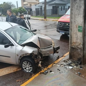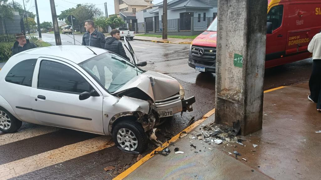 De acordo com informações apuradas pela reportagem do Portal Nova Santa Rosa no local, a motorista seguia pela via quando perdeu o controle da direção e colidiu contra um poste de energia elétrica. O impacto foi forte e causou danos significativos na parte frontal do veículo.